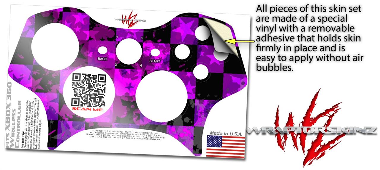 XBOX 360 Wireless Controller Decal Style Skin - Purple Star Checkerboard (CONTROLLER NOT INCLUDED)