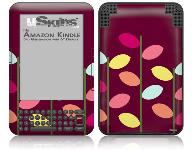 Plain Leaves On Burgundy - Decal Style Skin fits Amazon Kindle 3 Keyboard (with 6 inch display)