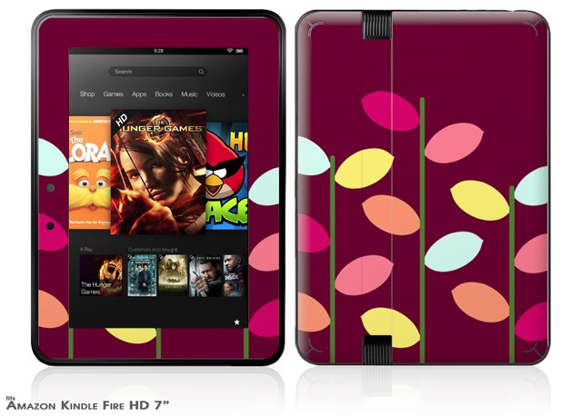 Plain Leaves On Burgundy Decal Style Skin fits 2012 Amazon Kindle Fire HD 7 inch