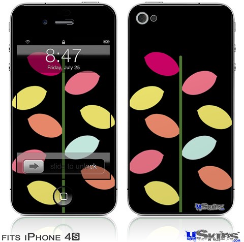 iPhone 4S Decal Style Vinyl Skin - Plain Leaves On Black
