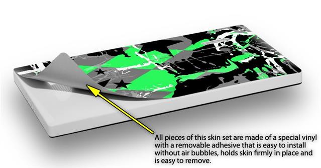 uSkins™ are self adhering vinyl skins that help prevent scratches and look great doing it. Unlike bulky silicon, plastic or metal cases and faceplates, uSkins are designed to be thin and very tough. uSkins are a composite of two layers of commercial grade materials. The bottom layer is a soft, flexible vinyl with a special removable adhesive that is easily positioned, applied without air bubbles, and effortlessly removed without leaving a sticky residue. Next we print the bottom layer with UV protected, fade resistant inks that deliver superb photo quality designs in vibrant colors. Finally we bond a professional grade laminate over the entire skin adding a glossy protective finish.