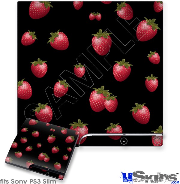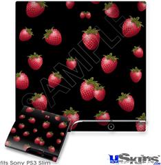 Decal Skin compatible with Sony PS3 Slim Strawberries on Black