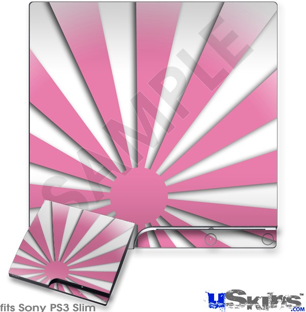 Decal Skin compatible with Sony PS3 Slim Rising Sun Japanese Pink