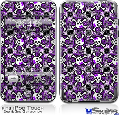 iPod Touch 2G & 3G Skin - Splatter Girly Skull Purple