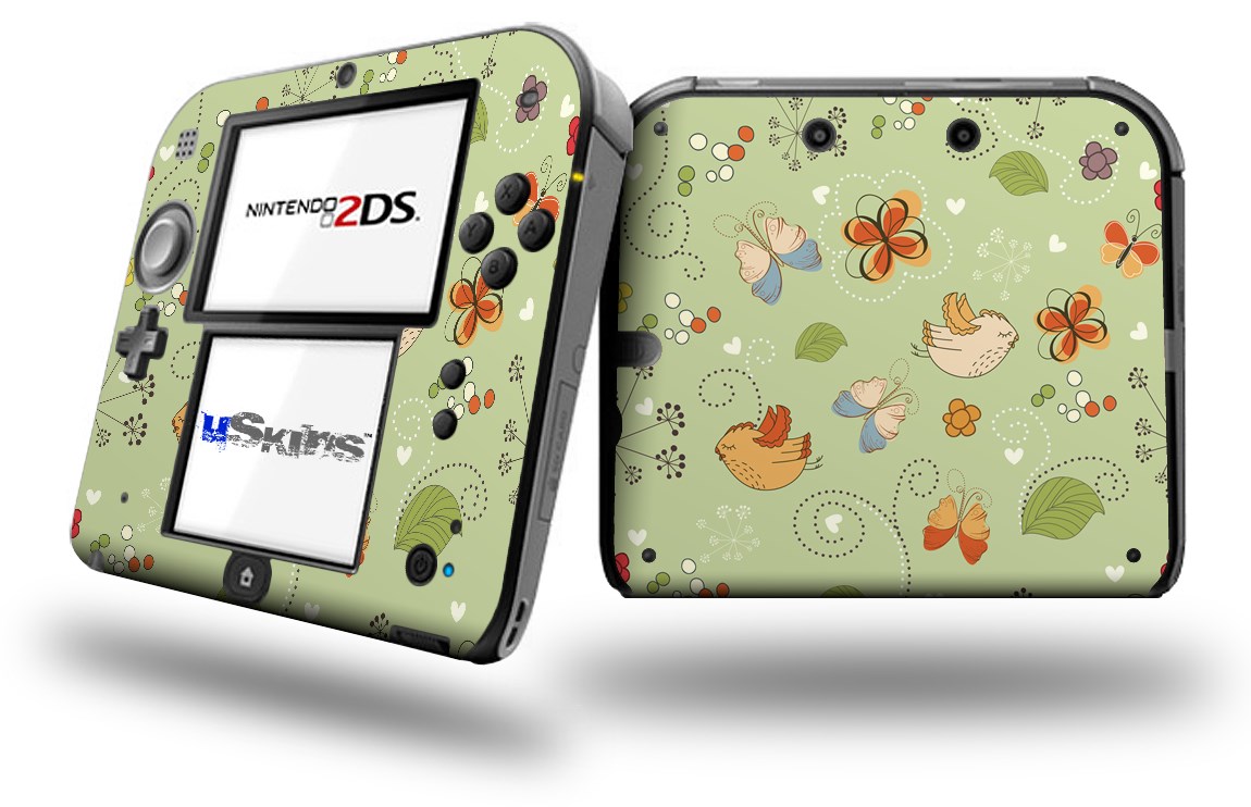 Birds Butterflies and Flowers - Decal Style Vinyl Skin fits Nintendo 2DS - 2DS NOT INCLUDED