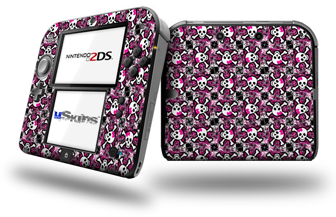 Splatter Girly Skull Pink - Decal Style Vinyl Skin fits Nintendo 2DS - 2DS NOT INCLUDED