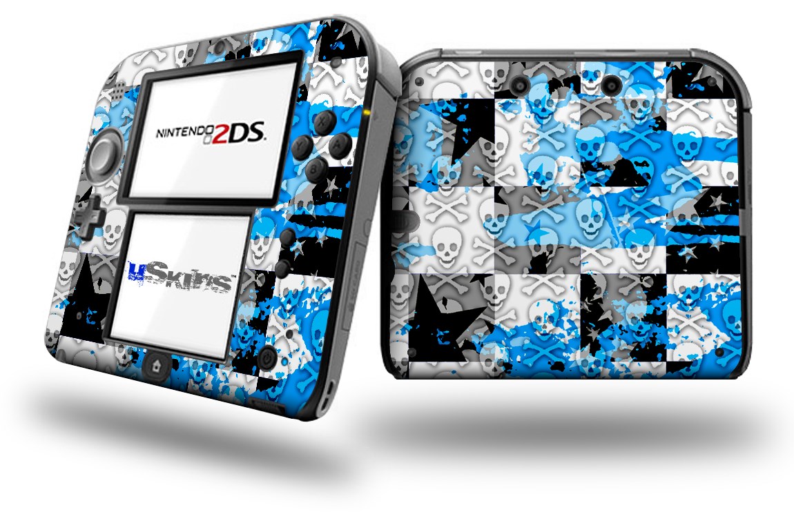 Checker Skull Splatter Blue - Decal Style Vinyl Skin fits Nintendo 2DS - 2DS NOT INCLUDED