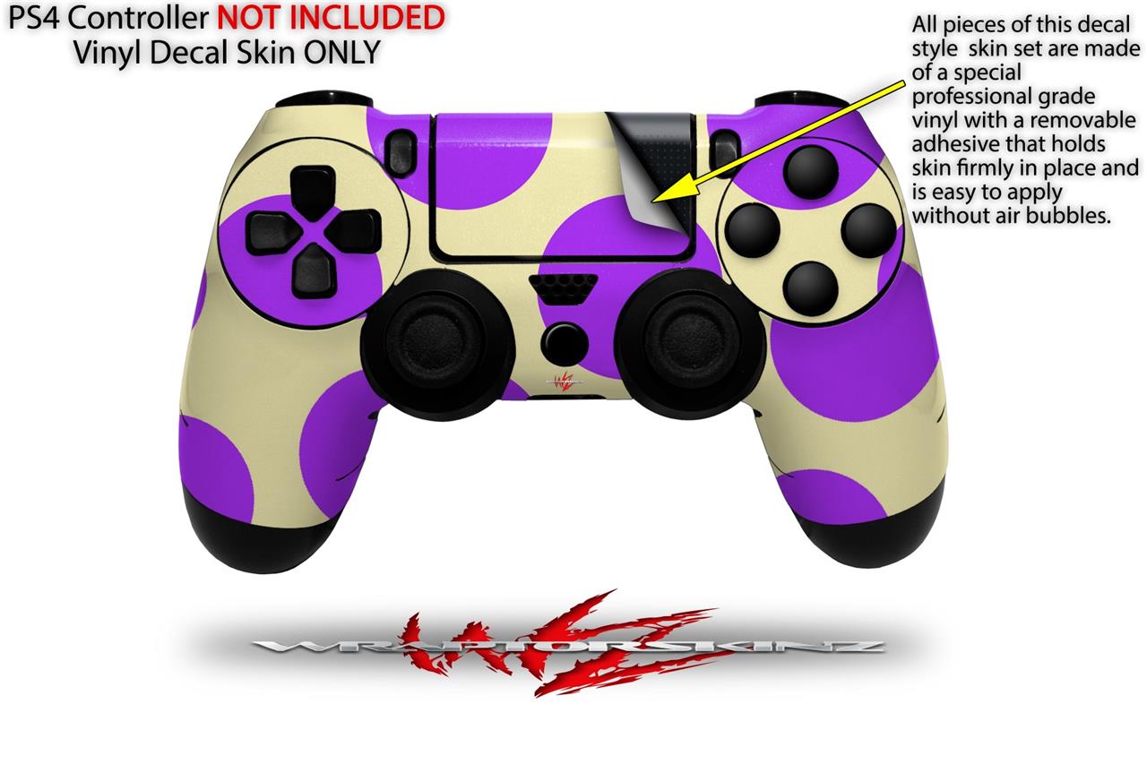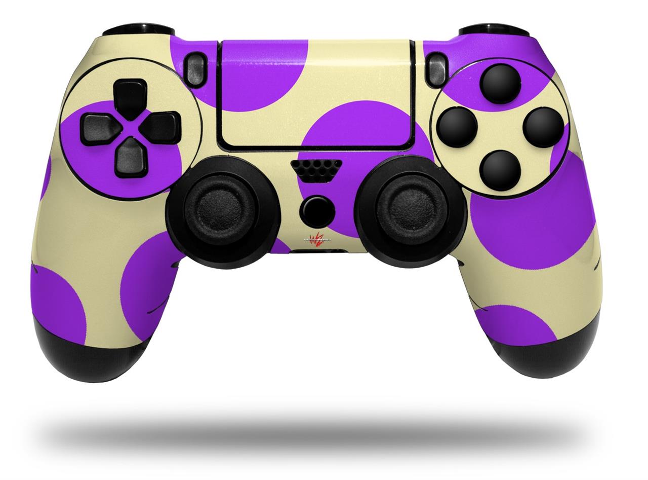 WraptorSkinz Skin compatible with Sony PS4 Dualshock Controller PlayStation 4 Original Slim and Pro Kearas Polka Dots Purple On Cream (CONTROLLER NOT INCLUDED)