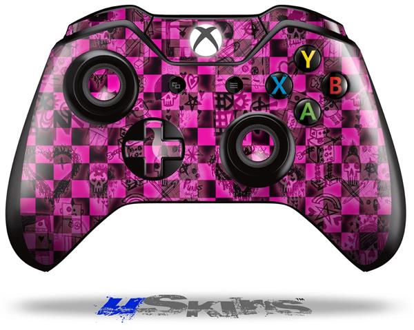 Decal Skin Wrap fits Microsoft XBOX One Wireless Controller Pink Checkerboard Sketches