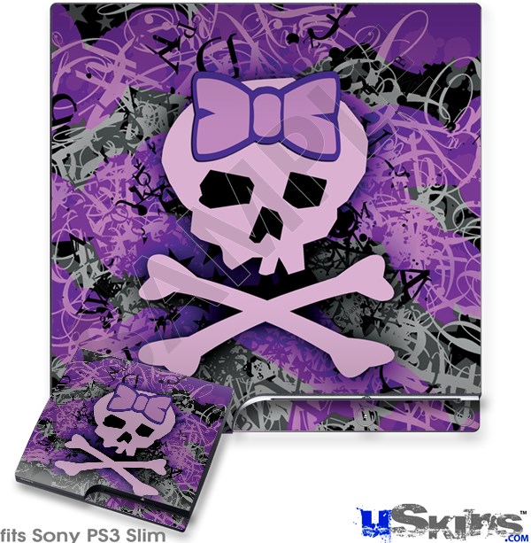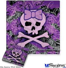Decal Skin compatible with Sony PS3 Slim Purple Girly Skull