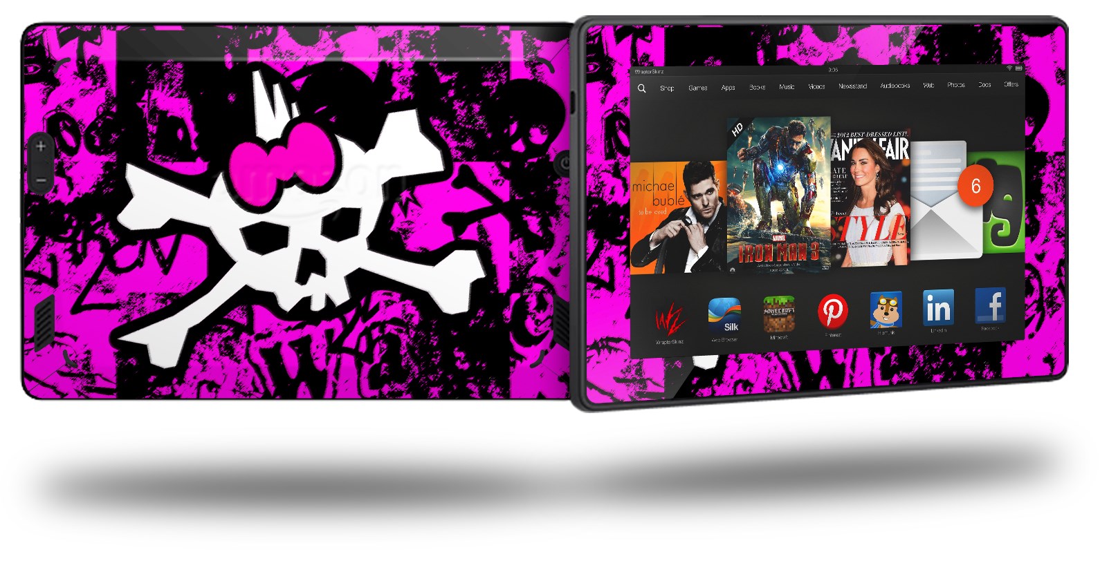• Skin covers front and back of the Kindle.