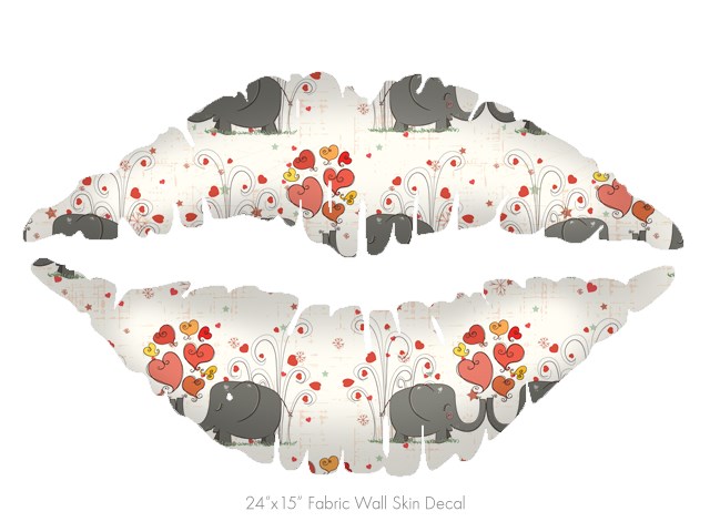 Elephant Love - Kissing Lips Fabric Wall Skin Decal measures 24x15 inches