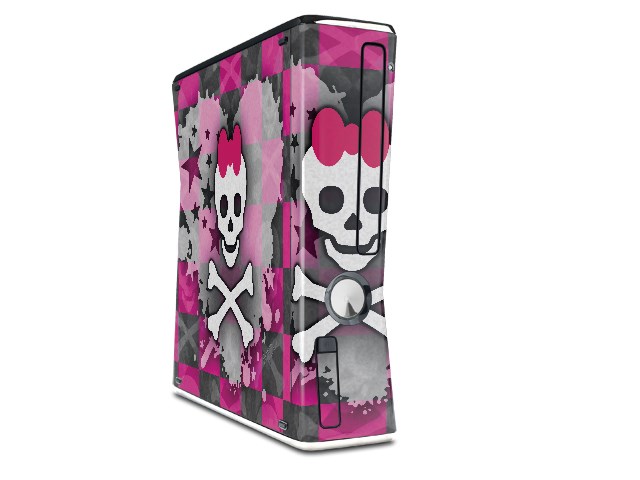 Princess Skull Heart Pink Decal Style Skin for XBOX 360 Slim Vertical