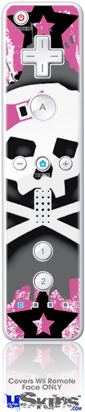 Wii Remote Controller Face ONLY Skin - Pink Bow Skull
