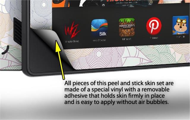 • Skin covers front and back of the Kindle.