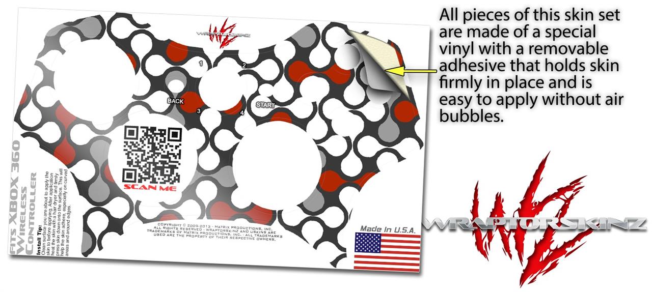 XBOX 360 Wireless Controller Decal Style Skin - Locknodes 05 Red Dark (CONTROLLER NOT INCLUDED)