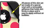 uSkins™ are self adhering vinyl decal style skins and are a great way to add a new look to your protective case. uSkins are a composite of two layers of commercial grade materials. The bottom layer is a soft, flexible vinyl with a special removable adhesive that is easily positioned, applied without air bubbles. Next we print the bottom layer with UV protected, fade resistant inks that deliver superb photo quality designs in vibrant colors. Finally we bond a professional grade laminate over the entire skin adding a glossy protective finish.