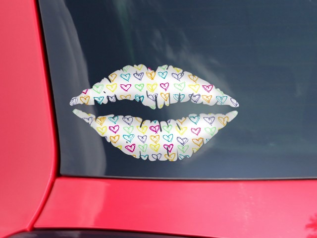 Lips Decal 9x5.5 Kearas Hearts White