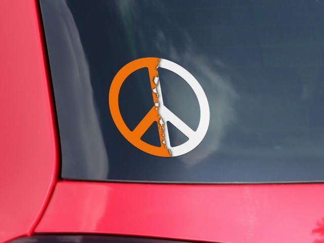 Ripped Colors Orange White - Peace Sign Car Window Decal 6 x 6 inches