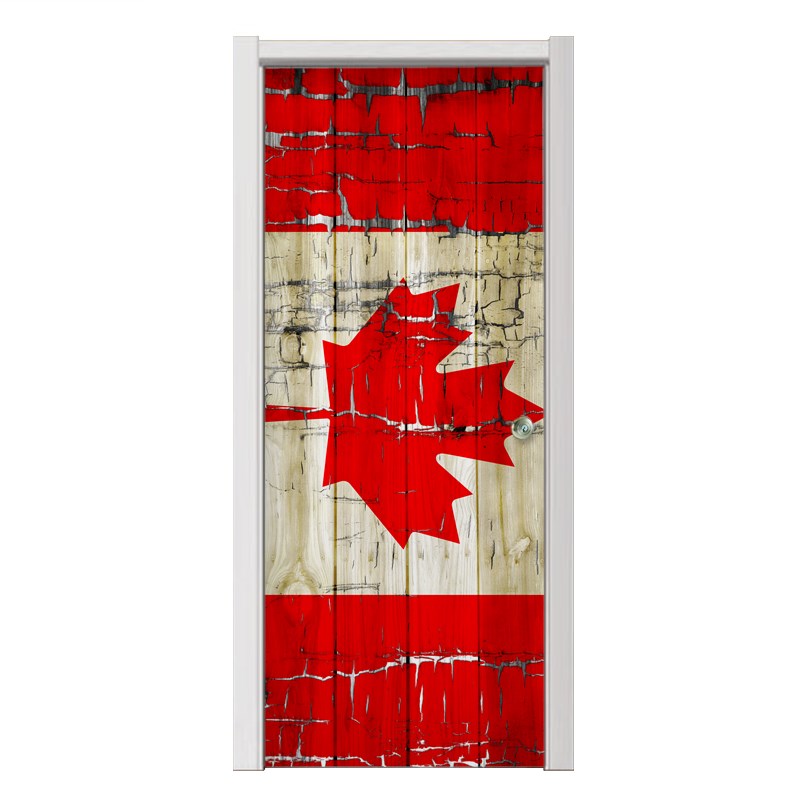 Painted Faded and Cracked Canadian Canada Flag Door Skin (fits doors up to 34x84 inches)