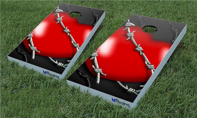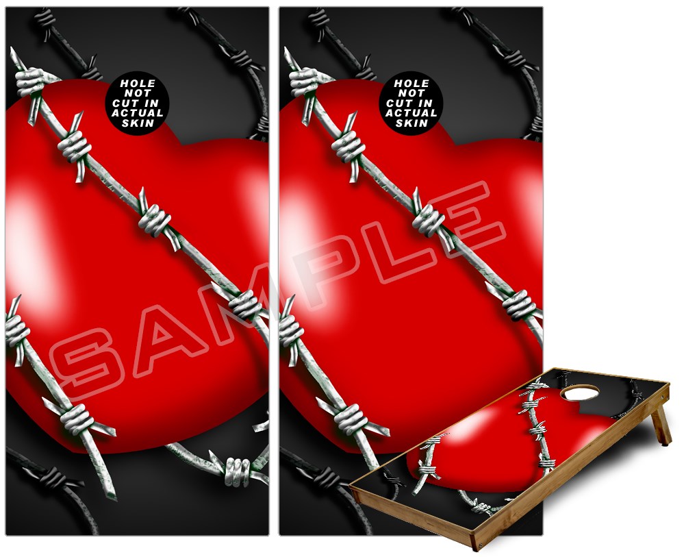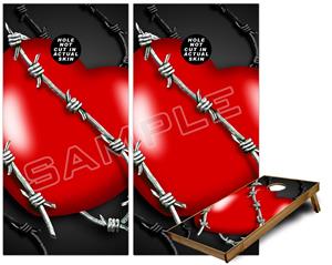 Cornhole Game Board Vinyl Skin Wrap Kit - Barbwire Heart Red fits 24x48 game boards (GAMEBOARDS NOT INCLUDED)