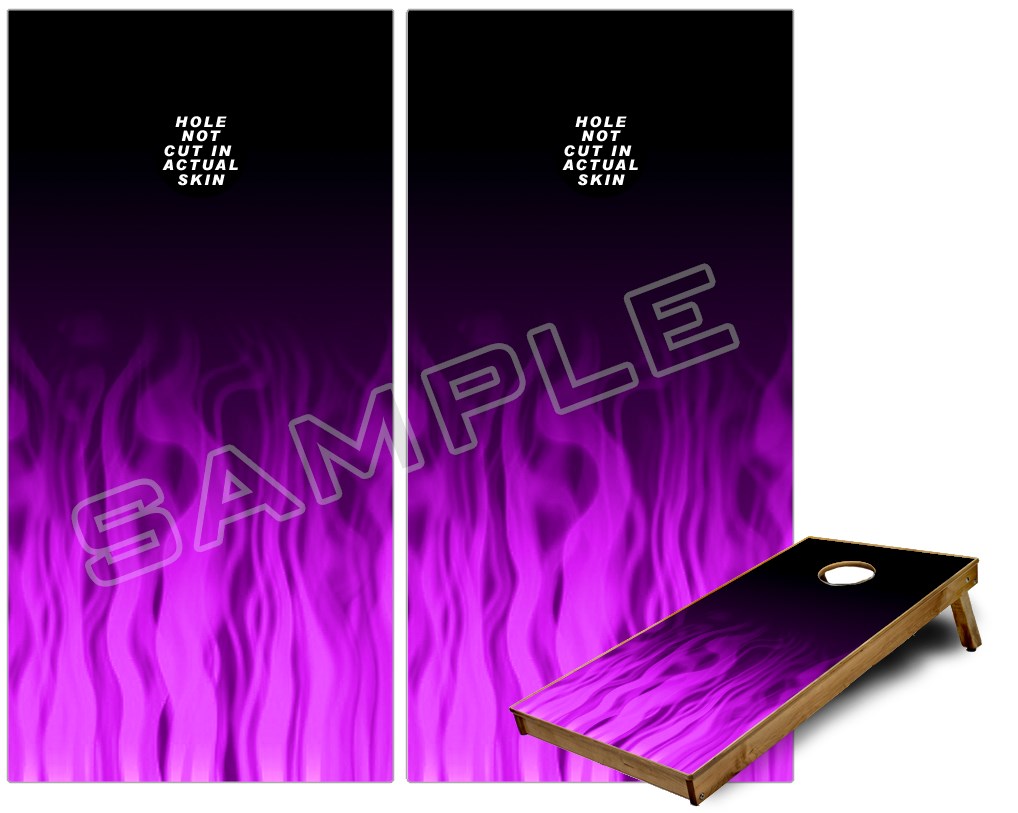 Cornhole Game Board Vinyl Skin Wrap Kit - Fire Flames Purple fits 24x48 game boards (GAMEBOARDS NOT INCLUDED)