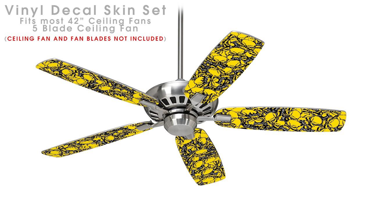 Scattered Skulls Yellow - Ceiling Fan Skin Kit fits most 42 inch fans (FAN and BLADES SOLD SEPARATELY)