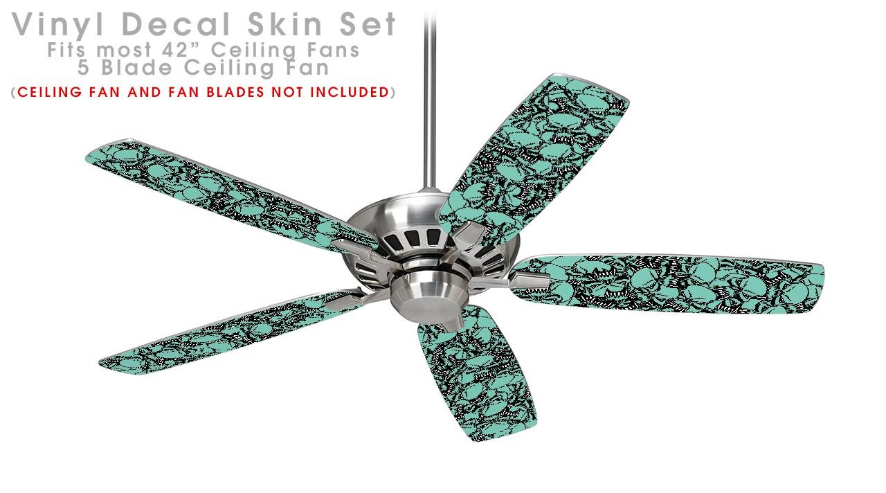 Scattered Skulls Seafoam Green - Ceiling Fan Skin Kit fits most 42 inch fans (FAN and BLADES SOLD SEPARATELY)
