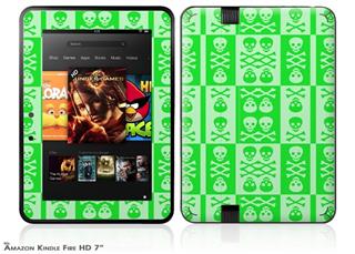 Skull And Crossbones Pattern GreenDecal Style Skin fits 2012 Amazon Kindle Fire HD 7 inch