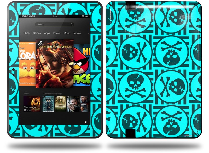 Skull Patch Pattern Blue Decal Style Skin fits Amazon Kindle Fire HD 8.9 inch