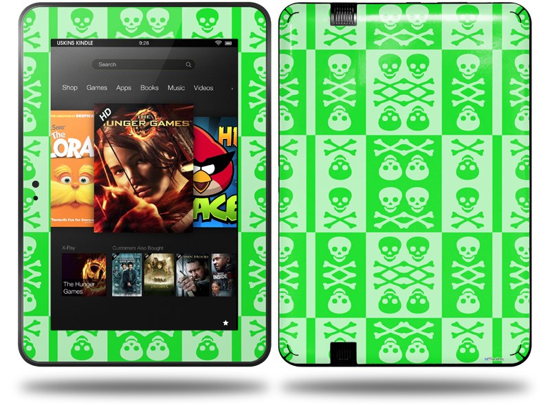 Skull And Crossbones Pattern Green Decal Style Skin fits Amazon Kindle Fire HD 8.9 inch