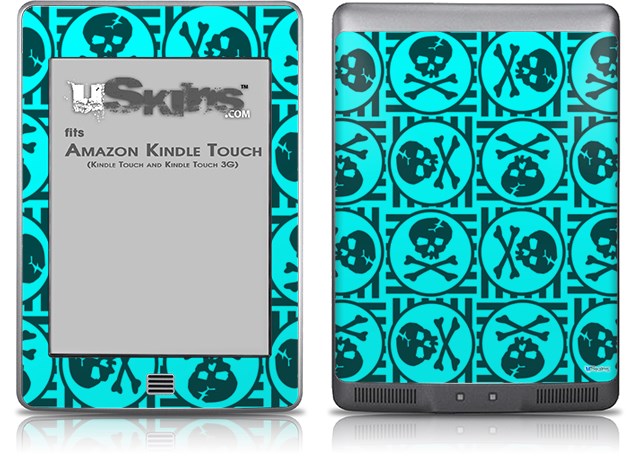 Skull Patch Pattern Blue - Decal Style Skin (fits Amazon Kindle Touch Skin)