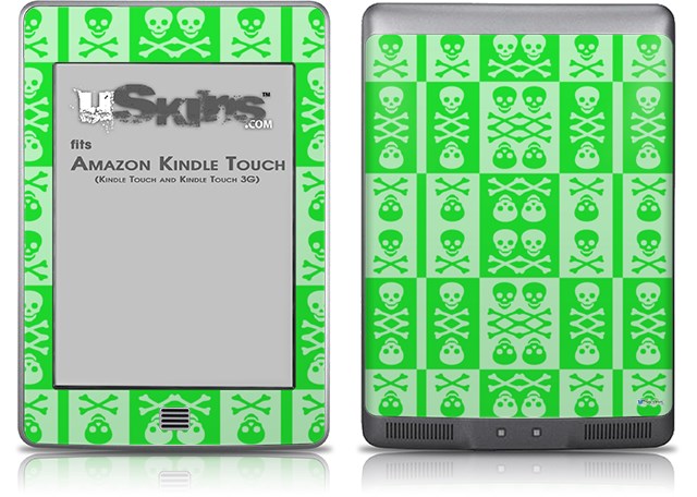 Skull And Crossbones Pattern Green - Decal Style Skin (fits Amazon Kindle Touch Skin)