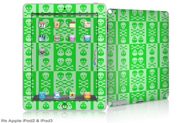 iPad Skin - Skull And Crossbones Pattern Green (fits iPad2 and iPad3)