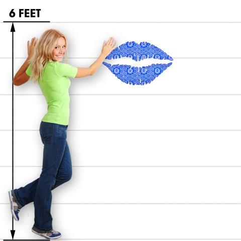 Gothic Punk Pattern Blue - Kissing Lips Fabric Wall Skin Decal measures 24x15 inches