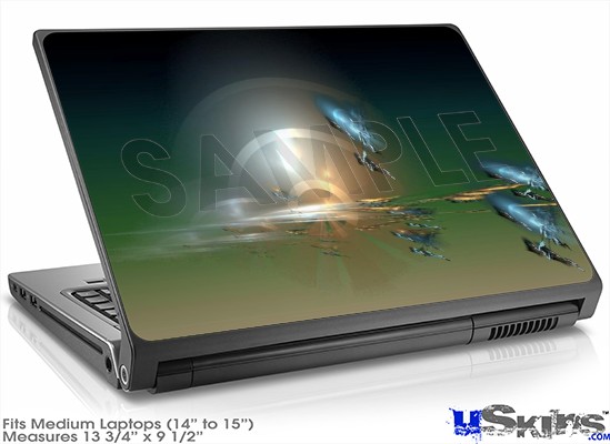 Laptop Skin fits most medium size laptops with 14" to 15" screens. Skin measures 13 3/4" wide x 9 1/2" high. uSkinsTM self adhering vinyl skins will look amazing on your electronic gear, printed at the highest resolution possible for unbeatable color and razor sharp clarity. Unlike bulky silicon, plastic or metal cases and faceplates, uSkins are designed to be thin and very tough. uSkins are a composite of layered commercial grade vinyls. The bottom layer is a soft, flexible vinyl with a special removable adhesive that is easily positioned, applied without air bubbles, and effortlessly removed without leaving a sticky residue. uSkins are printed with the latest in UV protected inks that resist fading for up to 3 years even in direct sunlight. Finally we bond a professional grade laminate over the entire skin adding a professional glossy protective finish.