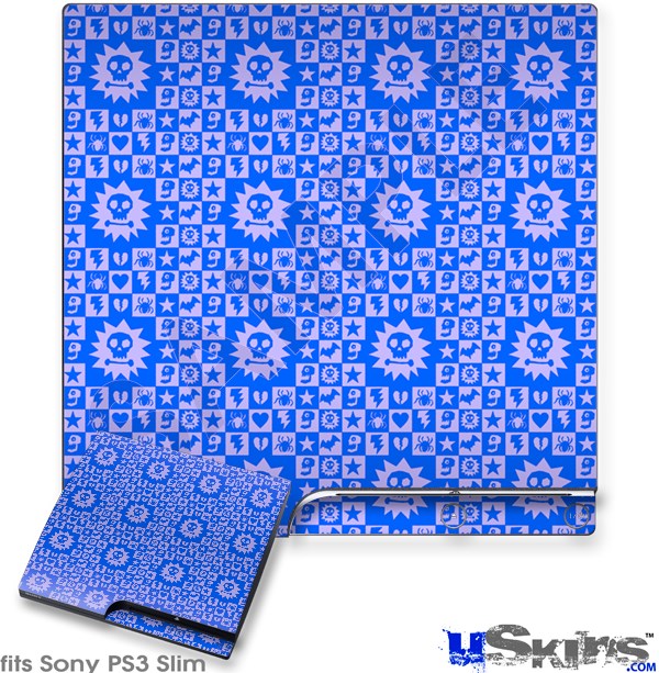 Decal Skin compatible with Sony PS3 Slim Gothic Punk Pattern Blue