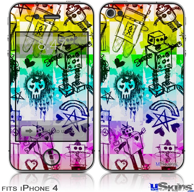 iPhone 4 Decal Style Vinyl Skin - Scene Kid Sketches Rainbow (DOES NOT fit newer iPhone 4S)