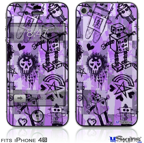 iPhone 4S Decal Style Vinyl Skin - Scene Kid Sketches Purple