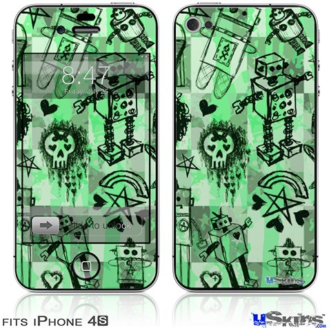 iPhone 4S Decal Style Vinyl Skin - Scene Kid Sketches Green