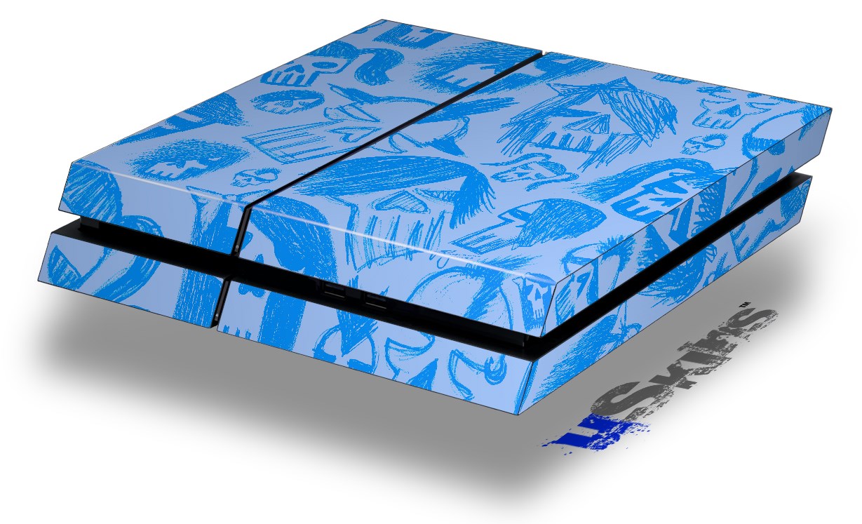 Vinyl Decal Skin Wrap compatible with Sony PlayStation 4 Original Console Skull Sketches Blue (PS4 NOT INCLUDED)