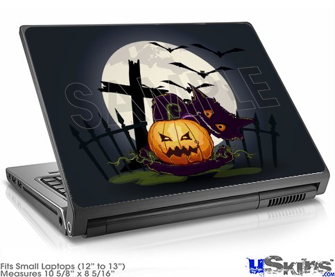 Laptop Skin (Small) - Halloween Jack O Lantern and Cemetery Kitty Cat