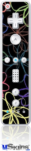 Wii Remote Controller Face ONLY Skin - Kearas Flowers on Black