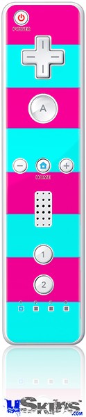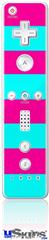 Wii Remote Controller Face ONLY Skin - Psycho Stripes Neon Teal and Hot Pink