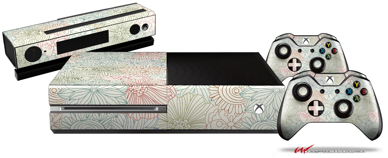 Flowers Pattern 02 - Holiday Bundle Decal Style Skin fits XBOX One Console Original, Kinect and 2 Controllers (XBOX SYSTEM NOT INCLUDED)