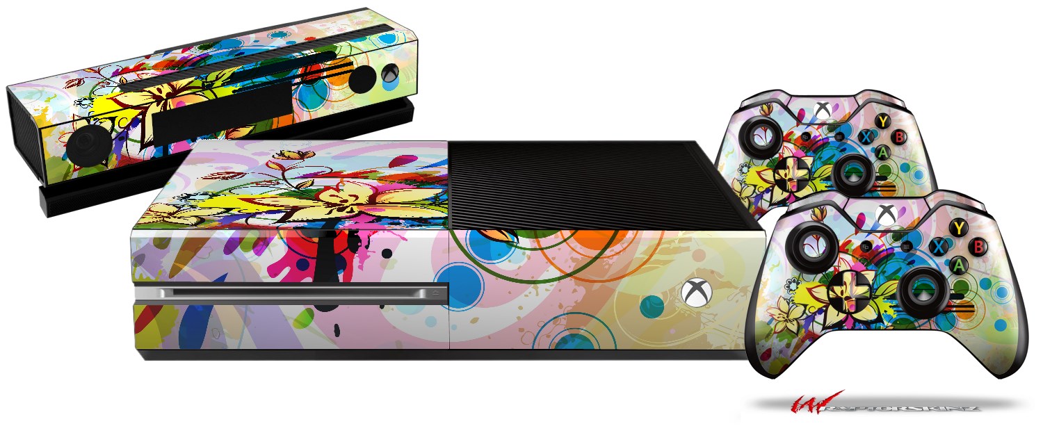 Floral Splash - Holiday Bundle Decal Style Skin fits XBOX One Console Original, Kinect and 2 Controllers (XBOX SYSTEM NOT INCLUDED)