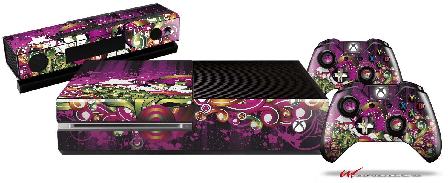 Grungy Flower Bouquet - Holiday Bundle Decal Style Skin fits XBOX One Console Original, Kinect and 2 Controllers (XBOX SYSTEM NOT INCLUDED)