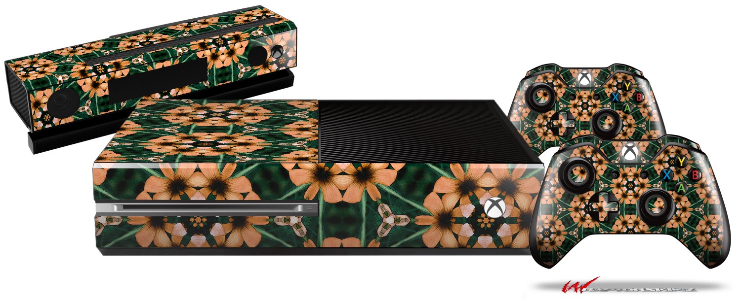 Floral Pattern Orange - Holiday Bundle Decal Style Skin fits XBOX One Console Original, Kinect and 2 Controllers (XBOX SYSTEM NOT INCLUDED)