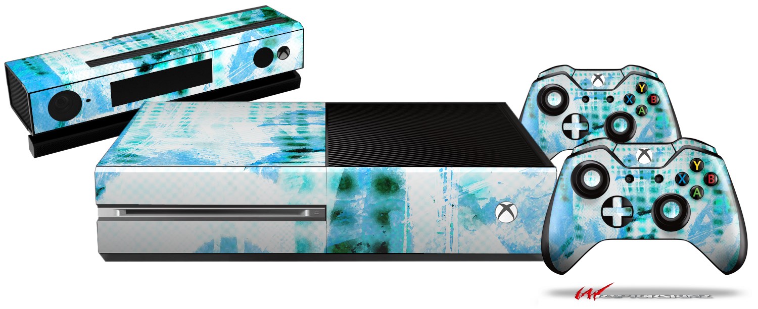Electro Graffiti Blue - Holiday Bundle Decal Style Skin fits XBOX One Console Original, Kinect and 2 Controllers (XBOX SYSTEM NOT INCLUDED)