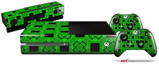 Criss Cross Green - Holiday Bundle Decal Style Skin fits XBOX One Console Original, Kinect and 2 Controllers (XBOX SYSTEM NOT INCLUDED)